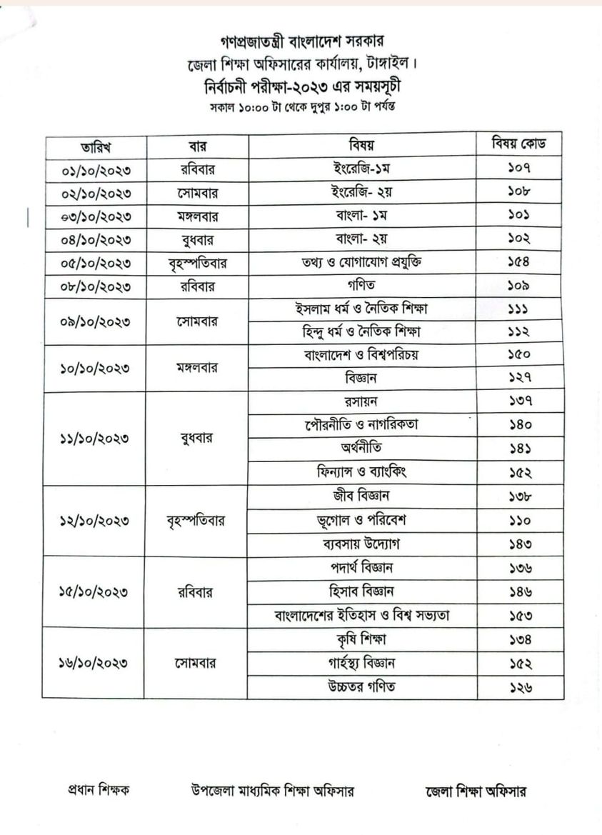 নির্বাচনী পরীক্ষা -২০২৩ খ্রি. রুটিন- জেনারেল শাখা